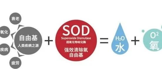 SOD是生物体内清除有害过氧化物的首要酶类,具有强力的抗氧化功能。其可以分解并清除体内的自由基,将之分解成对人体无害的水分子和氧分子,消除组织细胞脂质过氧化,抑制活性氧对细胞及DNA的伤害。此外,SOD还能延缓老化、减少发炎反应,以及降低细胞癌化的机率,调节调节睡眠质量,增强人体记忆力,提高机体免疫力,激发青春活力。