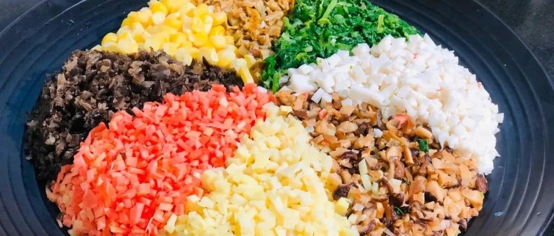 27/ 白菜+面筋+香干+黄花菜+木耳+粉丝+蘑菇 食材:白菜,面筋,香干,黄花菜,木耳,粉丝,蘑菇,香菜,麻酱,红腐乳,香油① 将黄花菜、干蘑菇、木耳、粉丝泡发,然后和洗净的白菜、面筋、香干、香菜一起切成碎粒,装进容器;② 用三小勺麻酱,四块红腐乳,适量香油和腐乳汁调和均匀(觉得不够咸可再加入适量盐)。 28/ 胡萝卜+芹菜+白菜+木耳+香菇+黄花菜+山药 食材:山药,胡萝卜,芹菜,圆白菜,木耳,香菇,黄花菜,姜,盐,花生油① 将木耳、黄花菜、香菇提前一晚浸泡,用的时候焯遍水;③ 炒锅倒油加热,放入姜末,将蔬菜粒按先生后熟的顺序,依次倒入锅里翻炒,最后加盐调味即可。食材:黄瓜一根,大青椒一个,胡萝卜半个,大白菜3片(叶带帮的),香菇5个,素蠔油,酱油,花椒面,植物油,盐食材:口蘑一斤,胡萝卜一个,香菜5棵,青豆少许,生姜一块,盐,花椒粉① 将口蘑洗净后切成碎块,胡萝卜擦丝挤水,香菜切成碎末、青豆在开水中过一下,姜切碎末;② 喜欢吃浓香型的就将口蘑放在油中略炒一下并放入老抽几滴出锅;③ 其他菜一起拌匀依次放入盐、少许花椒粉拌匀即可;④ 喜欢吃原味的就不必炒了直接将菜馅用油拌匀后放调料就可以了。