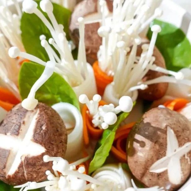 1.食材准备:白萝卜、胡萝卜洗净,用刨皮刀刨成薄片2.将胡萝卜和白萝卜卷起来用牙签固定,塞入金针菇,香菇去蒂背部切花刀;做法:黄豆浸泡过夜,用清水煮20分钟,用料理机打磨成豆浆。使用黑豆,鹰嘴豆等等豆类也是可以的,不过颜色上会稍有不同。松茸一品鲜1勺+松茸调味料1勺+小米辣(不吃辣的可不放),调和均匀,味道超赞哦。5.食材烫熟之后就可以品尝啦,豆乳锅鲜香醇厚,特别美味。浓厚香醇的豆乳锅底,还有来自多种蔬菜的甘甜,一口汤、一口菜,从嘴到胃,再暖到心里~咕嘟咕嘟,咕嘟咕嘟,好心情都和汤底一起,翻腾洋溢了起来~不要浪费一滴汤汁,吃到最后,一定要留下胃口,下一包面,吸收所有豆乳汤汁与蔬菜精华,全部嗦到肚子里!这么健康又有滋味的火锅,外头买都买不到!吃完也不上火,你一定要试试!