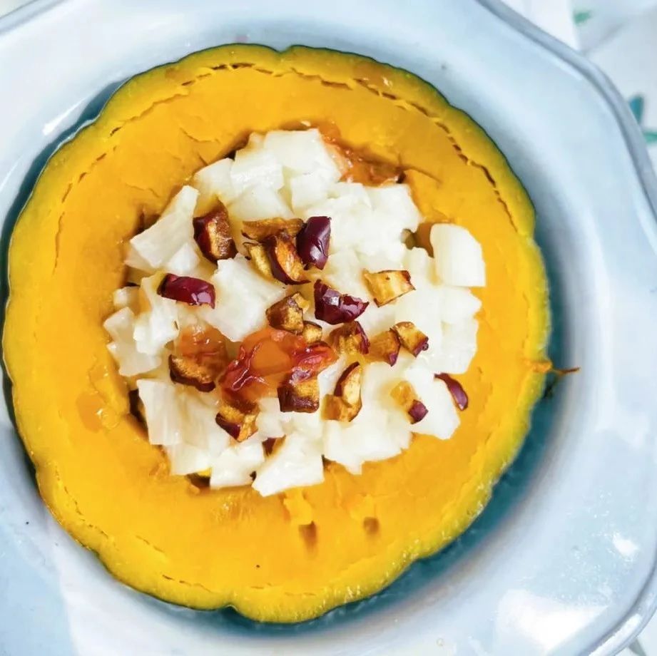 南瓜含有丰富的维生素A和维生素E,可增强机体免疫力,对改善秋燥症状大有裨益。从特性上看,南瓜有平喘、消肿的作用。常吃能够预防哮喘、支气管炎等秋季多发病 。南瓜营养丰富,常被用来做成点心、菜肴和汤羹,是秋季养生佳品,下面为大家推荐五款南瓜养生膳食方,以供选用。2、山药去皮切丁,大枣去核切丁,一层大枣一层山药均匀摆放3、最后在放入一个大碗中4、蒸锅中蒸20分钟就可以享用啦!