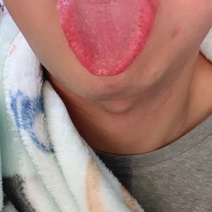 我看了看他的舌相是这样的,舌体胖大,舌头两侧齿痕明显,舌中部位凹陷,舌苔腻,明显的脾虚,舌中凹陷是由脾虚导致的气虚,中气不足,平时说话也会有中气不足的情况。这是他的舌相:(舌头两侧的齿痕,中间凹陷的部位,我用红色线圈了出来)