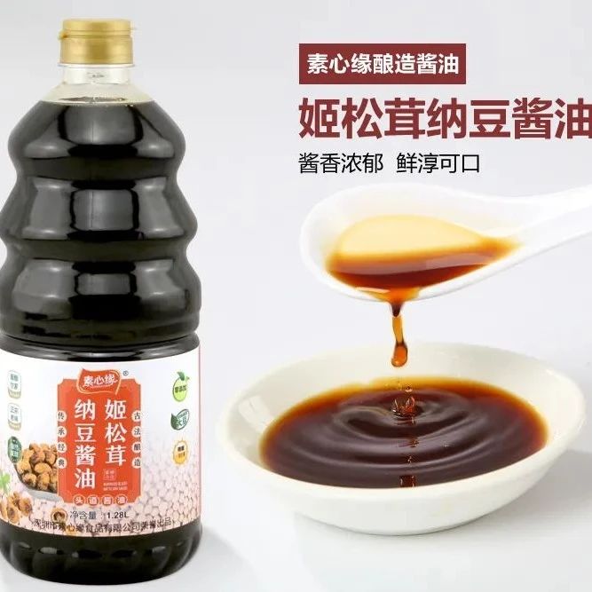 直到最近,发现了一款好酱油,忍不住要推荐给大家,它就是素心缘姬松茸纳豆酱油。