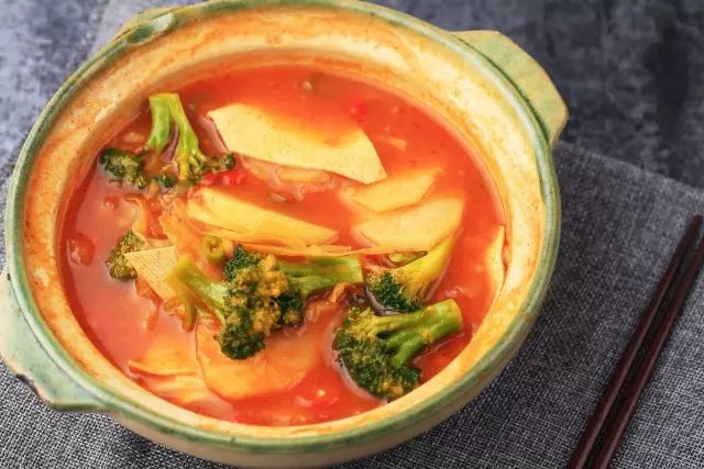10. 准备自己喜欢的蔬菜,酸辣番茄汤煮开后放入料理好的蔬菜和主食,煮熟即可