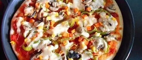 制作披萨前,最好提前一天做好的准备工作:制作素奶酪和披萨酱。将豆浆和糯米粉以1.5:1的比例用打蛋器搅拌均匀,放在小火上加热,同时不断搅拌,直至呈浓稠糊状关火,趁热加入少量植物油、盐、白醋。(尽量用复层底的锅,受热均匀不易糊掉)炒锅加植物油烧热,放入西红柿丁煸炒,再加白糖、盐、黑胡椒粉、罗勒叶碎,再熬煮大约10分钟,中间注意翻炒,以免糊底。盛出后晾凉,入冰箱冷藏。(注意加盐略多一点,披萨酱要尝起来略偏咸,因为整个披萨咸味的来源主要来自酱。) 准备面团:将适量发酵粉放入冷水搅拌调匀,静置几分钟。面粉里放入少许白糖和盐,一边搅拌面粉,一边将发酵粉水加入,和成略软的面团,并将面团按分成适合的大小,每个面团将做成一个披萨。(盐糖放一点就可以,放盐目的是让面团更筋道;加入糖和盐也可使披萨饼的味道更富有层次)准备蔬菜:胡萝卜、玉米粒、豌豆、蘑菇、香菇洗净后用开水焯一下,切块。青椒洗净切丝。铺放蔬菜,一般按照从大到小的顺序铺放较方便,如:青椒条、蘑菇片和香菇片、胡萝卜粒和玉米粒。将披萨盘放入已经预热的230℃的烤箱中层。烘焙15分钟后取出,将素奶酪用勺子再次涂抹均匀,再烤5分钟。披萨完成,切分、开动。素食心得:悠幽,女,某医学院教师,素食多年。开始吃素原因是因为担心食品安全问题,尤其是肉食经常出现各种各样的问题,如毒猪肉啊、禽流感、鱼塘里的激素、鸡肉里的抗生素等等。后来发现吃素后不容易有昏沉的感觉,脸上也不容易出痘痘了,抵抗力也增强了。不大容易感冒,即使感冒了,也比较容易恢复。并且素食又环保,还能保护动物,希望大家也能加入到素食的队伍中来。