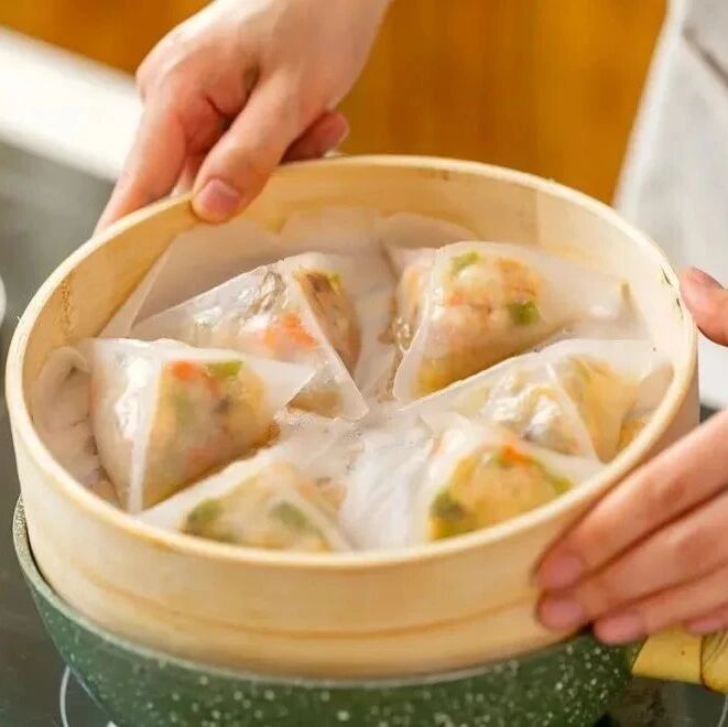 里头藏满了鲜美的菌菇、爽脆的贡菜,多重融合,好吃极了!菌菇贡菜饺的小心机,一个在于内馅的鲜,另一个就是晶莹剔透的水晶皮。贡菜又称皇帝菜、苔菜,脱水处理后再泡发,吃起来卜卜脆,因此又被称为响菜。至于外头的水晶皮,用澄粉和木薯粉调制而成,既透明又柔软,还有嚼劲。馅料:杏鲍菇100g 干香菇10g 干贡菜50g 胡萝卜50g 姜泥1/2小勺 香油1小勺 胡椒粉1/2小勺 糖1小勺 盐1/2小勺 素蚝油2小勺 生抽1小勺 水晶皮:澄粉100g 木薯淀粉100g 盐2g 开水200g3.大碗里加入1/2小勺姜泥、1/2小勺盐、1小勺糖、1/2小勺胡椒粉搅拌均匀4.再加入杏鲍菇丁、香菇丁、贡菜丁、胡萝卜丁、2小勺素蚝油、1小勺生抽搅拌均匀,馅料完成5.大碗里倒入100g澄面、100g木薯淀粉、2g盐,缓缓加入开水调成絮状,晾凉片刻,揉成面团后转移到案板上,加入一点油,再揉搓至细腻状态6.面团搓成长条,切割分成15g的小团,桌面撒少许淀粉,用手腕带动擀面棒,压扁面团,擀成中间厚四边薄的圆皮包入15g馅料,捏成三角或饺子形状,可用剪刀修剪边缘适合小白的造型秘方:哪怕皮擀得不那么圆,最后用剪刀来修剪,饺子边缘也可以很齐整7.蒸笼垫上油纸或抹上油,码入包好的饺子,再放入上汽的蒸锅上蒸8分钟,出锅晾凉后变透明即可食用大颗粒脆脆的贡菜、杏鲍菇,柔软的香菇,空口就超好吃,鲜美十足!