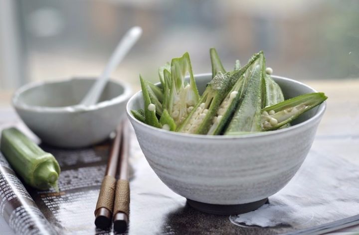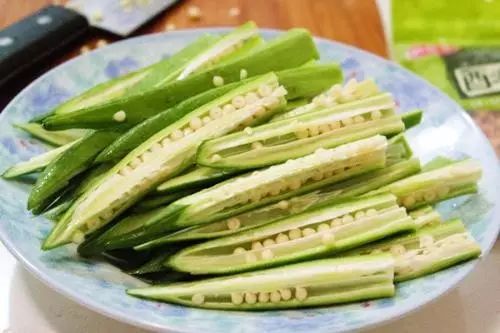 取两个秋葵,切除头尾部分后,将其切成两段,放入一杯清水中,盖好并在室温下放置过夜,次日早餐前,取出秋葵,饮用此水即可。