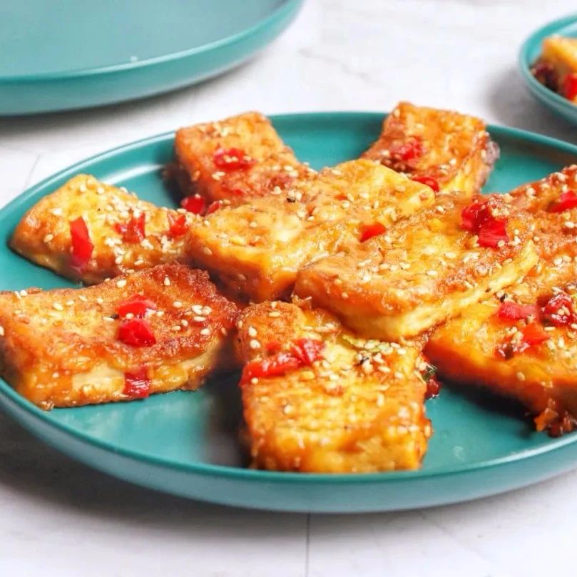 2. 准备一个盘子,倒入一层薄薄的淀粉,再将一块块豆腐先裹上一圈淀粉;3. 将锅子烧热,倒入适量食用油,平铺放入豆腐块,中小火慢煎;4. 煎豆腐期间,调酱汁;碗中倒入生抽、糖、剁辣椒、小半碗水,搅拌均匀;食谱| 美 的生活家