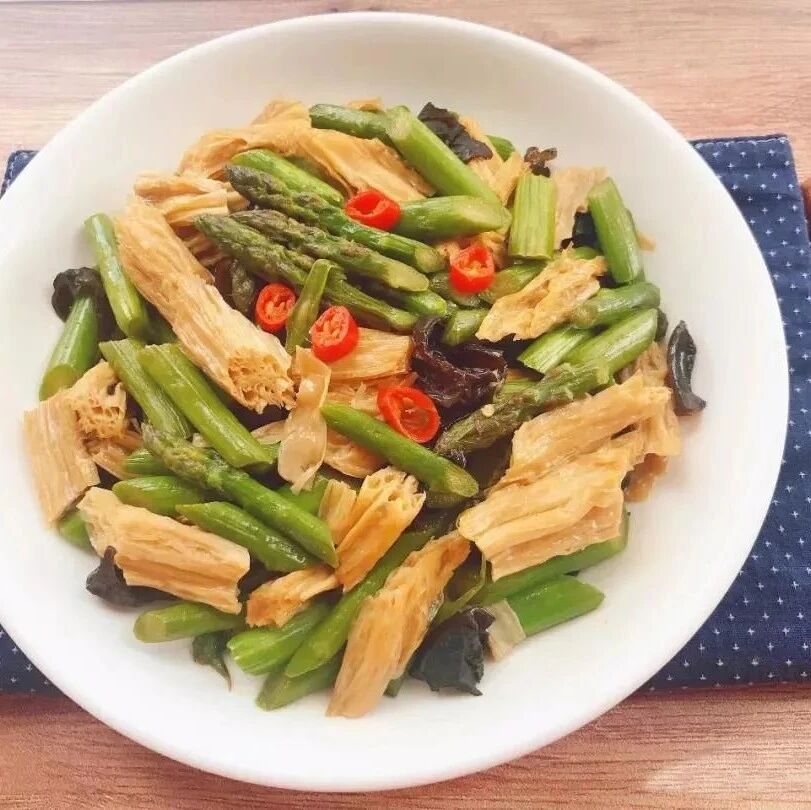 主料:芦笋,腐竹,黑木耳、红辣椒