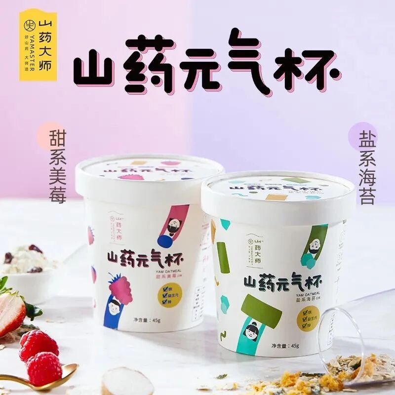 山药大师元气杯特别设计了甜系美莓、盐系海苔两种不同的口味,不仅能满足不同人的喜好,同时也富含不同的营养元素。