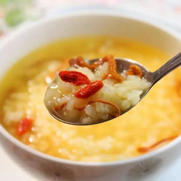 中医用薄荷作为发汗解热剂。明李时珍《本草纲目》云:"薄荷,辛能发散,凉能清利,专于清风散热。故头痛、头风、眼目、咽喉、口齿诸病为要药。"中老年人春季吃些薄荷粥,可以清心怡神,疏风散热,增进食欲,帮助消化。取枸杞50克,虫草花适量,粳米100克,同煮成粥,早、晚随量食用。枸杞子性味甘平,为肝肾经要药,是一种滋补肝肾的药食两用之品。春属木,与肝关系甚为密切。春季选食枸杞粥,可以补肝肾不足,治虚劳阳痿,咳嗽久不能愈者(无外感者)。此外,由于本品有降低血糖和胆固醇、保护肝脏、促进肝细胞新生等作用故有助于治疗糖尿病、动脉粥术硬化、慢性肝炎、夜盲症、营养不良、贫血等。胡萝卜350克,洗净切碎,加粳米100克,和水煮粥,早、晚餐服食或作午后点心。胡萝卜含有丰富的胡萝卜素,人体摄入后,可转变成维生素A,能保护眼睛和皮肤。患有皮肤粗糙和夜盲症、眼干燥症、小儿软骨病的人,食之很有裨益。平素脾虚泄泻者慎用本品。菊花50克,粳米100克,核桃仁适量,先将菊花煎汤,再将菊花汤、粳米、核桃仁同煮成粥,早、晚随量食用。中药菊花早为古代医家所喜用,《神农本草经》中把它列为上品,其性味甘苦而凉,具有疏散风热、宣通肺气、平肝明目的作用。 现代药理研究发现,菊花中含有挥发性精油,故具芳香,也含胆碱、维生素A、维生素B、氨基酸,还可增强毛细血管的抵抗力,并降低血压。临床上也有用以防治冠心病,中老年人如能在春季吃些菊花粥,不仅可防治风热头痛,肝炎目赤,眩晕耳鸣,而且久服还有使人肢体轻松,耳聪目明,提神醒脑效果。以干山药片45~60克,或鲜山药100~200克,冼净切片,与粳米100克、小米适量同煮粥,作早、晚餐用,山药味甘平,是一促性味平和的滋补脾、肺、肾的食物。据近代医学研究,山药含有淀粉酶、胆碱、黏液质、糖蛋白和自由氨基酸、脂肪、碳水化合物、维生素C及碘、钙、磷等。【版权声明】图文来源于网络,版权归原作者所有,侵权必删。